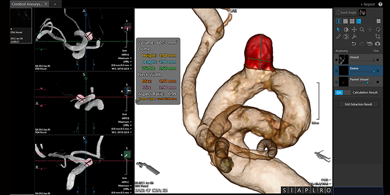 Інструмент аналізу церебральної аневризми полегшує екстракцію та сегментацію визначеної користувачем аневризми в мозкових артеріях.